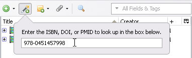 You can quickly add items to your library if you already know their ISBN, DOI, PubMed ID, arXiv ID, or ADS Bibcode. Click the Add Item by Identifier button (